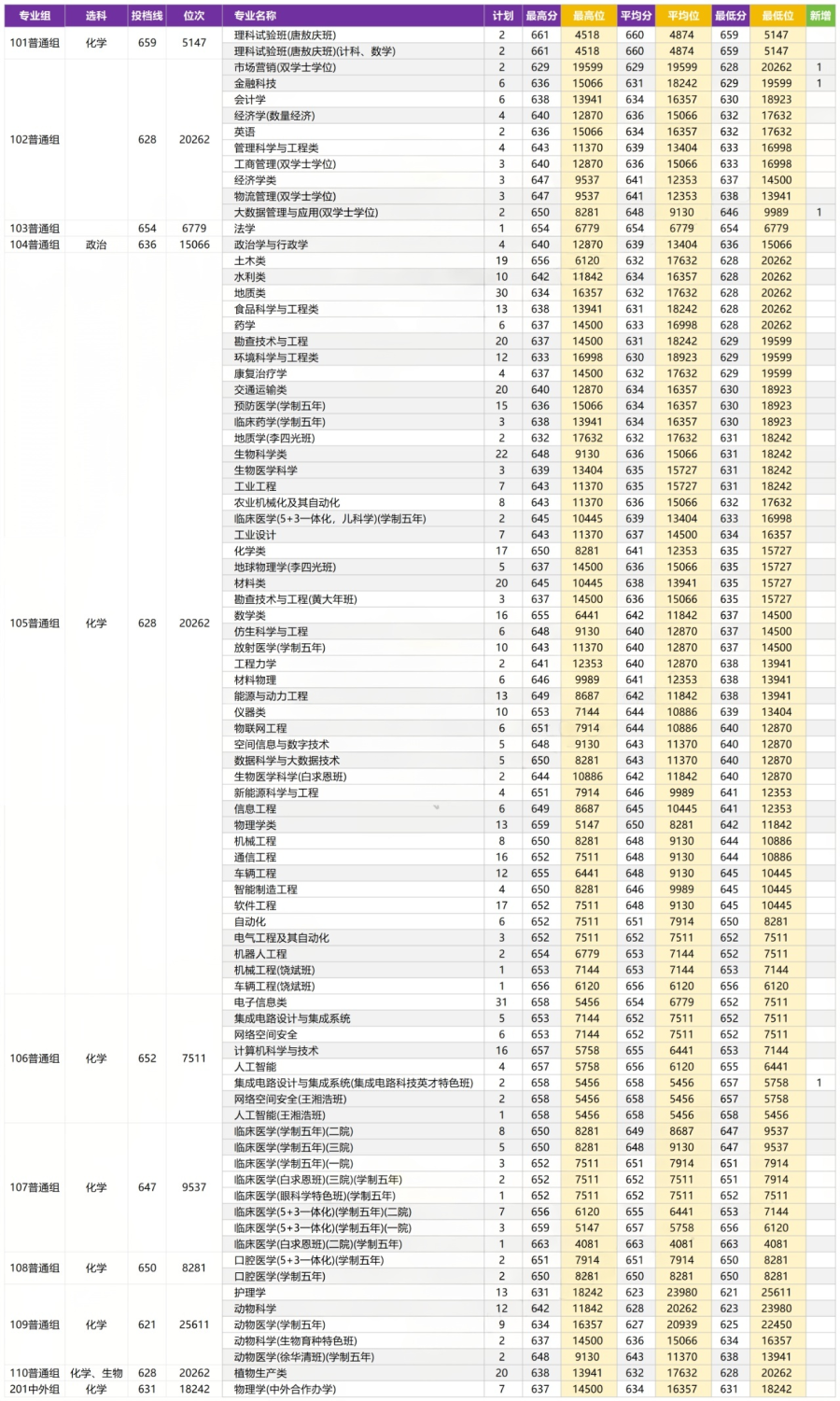 2025年吉林大学普通批次河南专业分数线及位次表