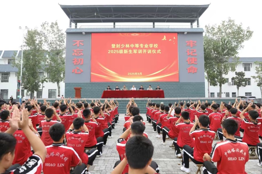 仪式最后,塔沟教育集团武教处处长李占功郑重宣布:“登封少林中等专业学校2025级新生军训正式开训!” 随着宣布声落下,现场掌声雷动,新生们的军训生活正式拉开帷幕。