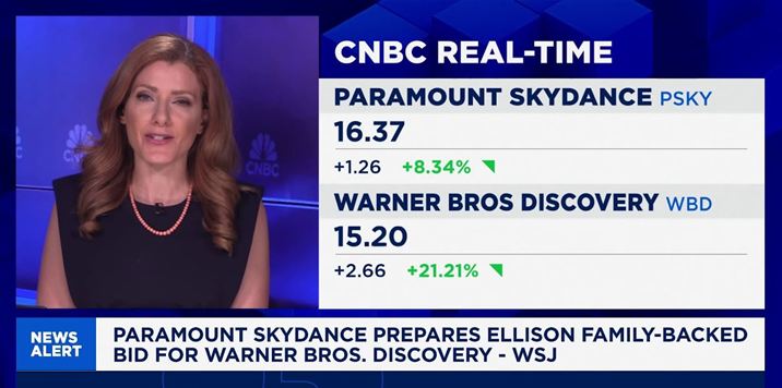 9月11日,路透社率先披露,刚刚完成对派拉蒙全球(Paramount Global)收购的天舞传媒(Skydance Media),正在其背后金主埃里森家族的支持下,准备对华纳兄弟探索发起一场主要以现金为主的收购。