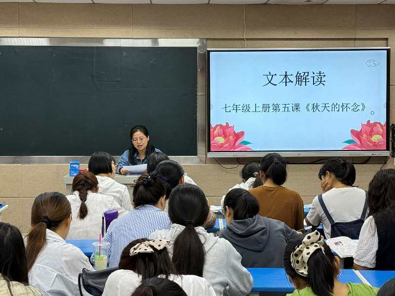 活动伊始,李艳阳老师进行了题为《从课标视角解读<秋天的怀念>》的专题分享。她从《义务教育语文课程标准》的要求出发,深刻剖析了《秋天的怀念》一文所蕴含的丰富教学价值。本文不仅是母爱主题的典范,更是指向生命教育、情感教育的绝佳载体。教师的文本解读深度,直接决定了教学目标的设定高度和教学活动的设计效度。