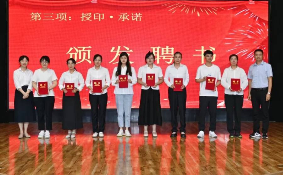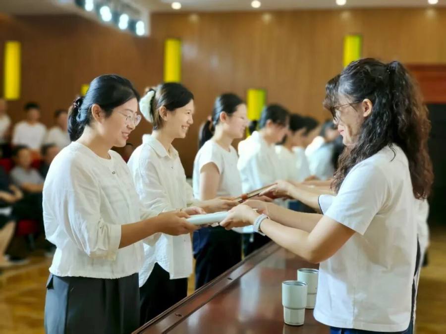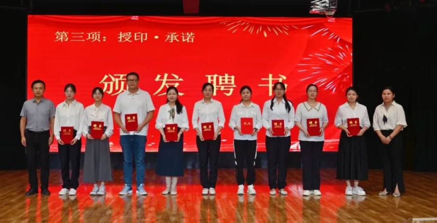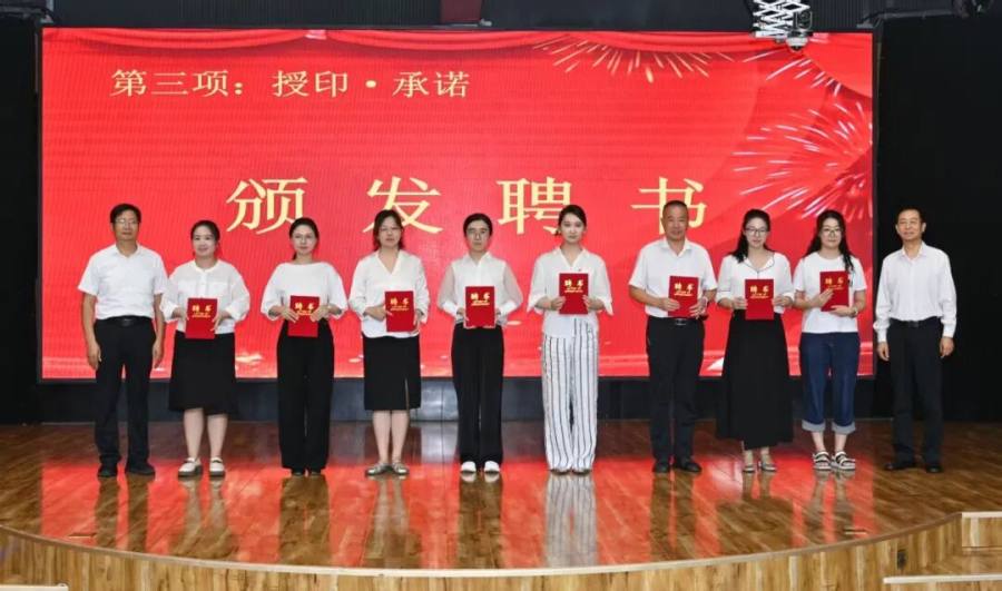 在庄重的“授印·承诺”环节中,校领导分三组为学科师傅及班主任师傅颁发了聘书。一纸聘书,承载的是学校的信任与教育的传承。
