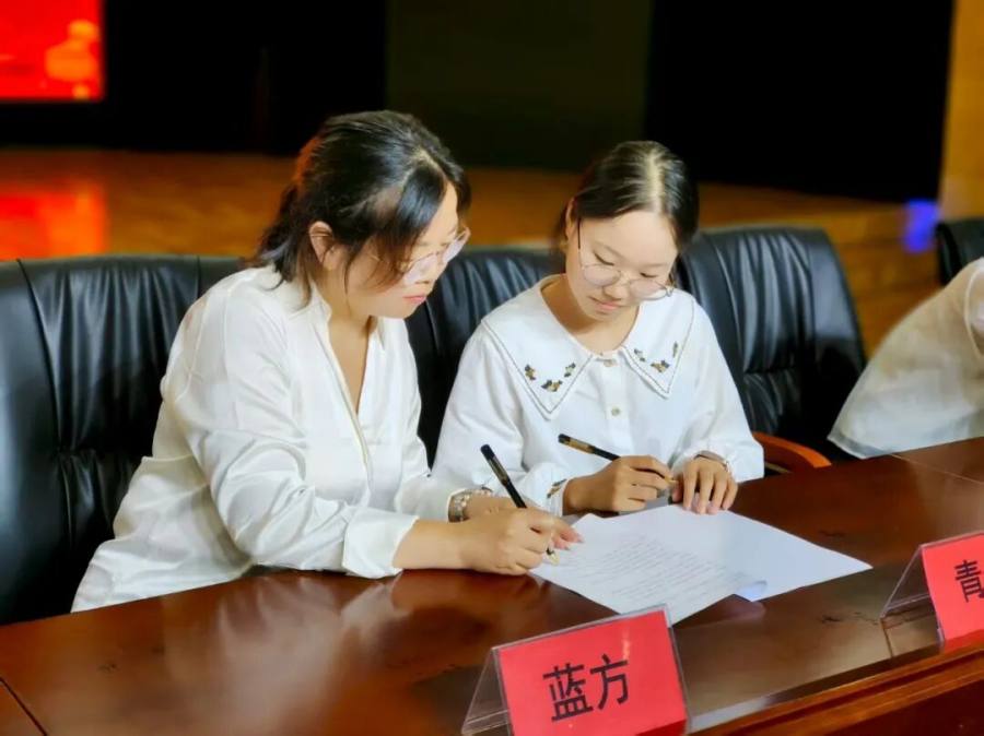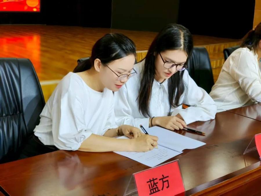 随后,师徒双方共同签订《青蓝结对协议书》,以契约精神共守教育初心。笔墨流转之间,一份份教育的誓言悄然立下。