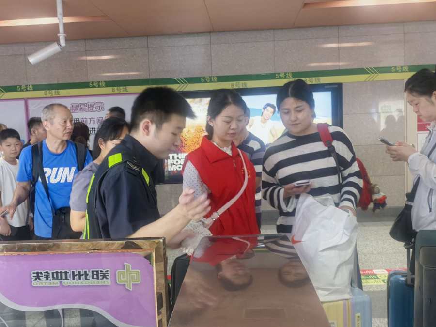 此外,志愿者们积极维护站内文明乘候车秩序,温馨提醒乘客注意安全、遵守规章,倡导文明出行的新风尚。他们忙碌的身影和热情的笑容,成为了地铁站内一抹亮丽的“红色风景线”,获得了过往旅客的频频赞许。