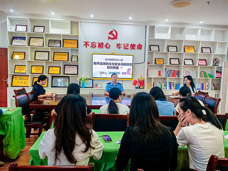教师不仅是知识的传递者,更是幼儿安全的守护者和法治精神的践行者。为进一步强化教师这一崇高角色的责任与使命,9月17日上午,四川省广安市岳池县翔凤幼儿园特邀我园法治副校长——城东派出所贺丹警官,为全体教职工开展专题法制讲座。