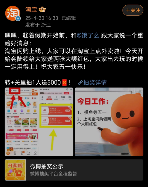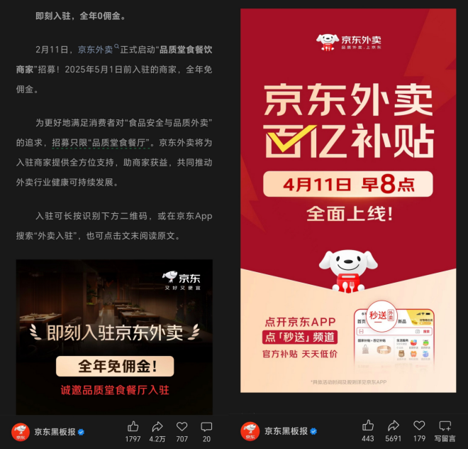 回溯今年的外卖大战时间线:2月京东外卖入局,当京东百亿补贴上线没多久,4月30日,淘宝闪购上线,正式吹响外卖大战的号角。随后美团也带着大额补贴进入战局。