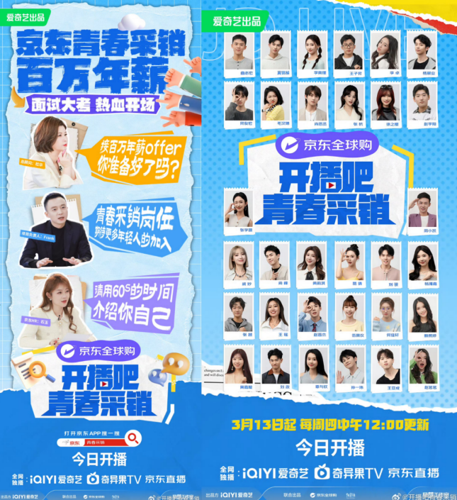京东走与电商契合的内容路线,将平台生态、调性和综艺节目深度绑定。《开播吧,青春采销》以京东全球购业务为场景,复刻真实采销中海外选品、限时谈判、直播运营等关键环节,打造彰显京东特色的高知、高颜、高能的采销团队。京东服饰赞助《海帆朵朵》,通过记录帆船赛事筹备过程,展现女性在航海领域的蜕变成长。