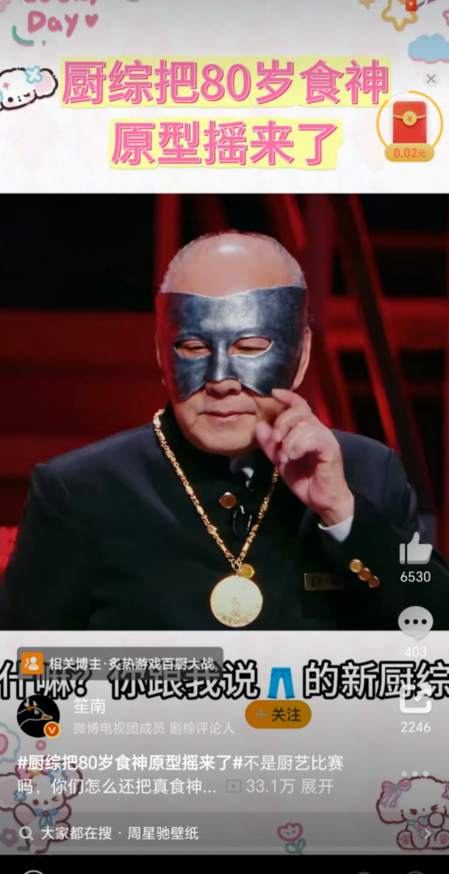 有趣的是,在暑期档的这两档厨师综艺中,网友发现了一个冠名赞助的固定公式:腾讯的《一饭封神》由海天+美团联合,优酷的《炙热游戏:百厨大战》则是李福记+淘宝闪购。