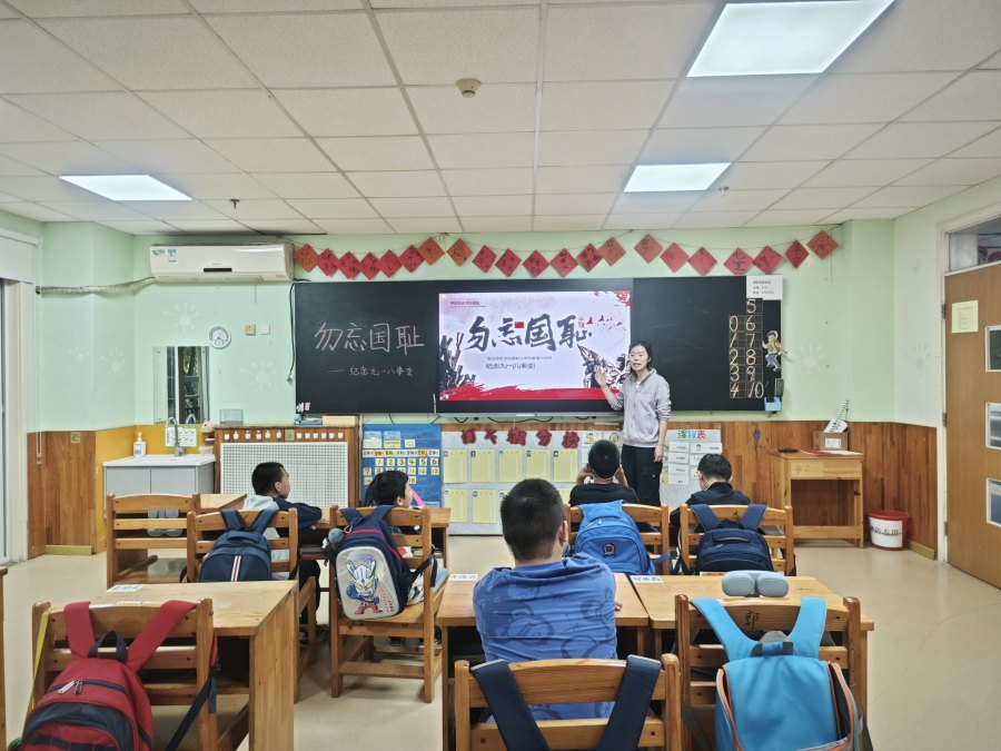 “就像我们的小火车不能偏离轨道,我们的国家也曾在那天遭遇了危险。”刘静老师的比喻生动贴切,孩子们频频点头,眼神专注。
