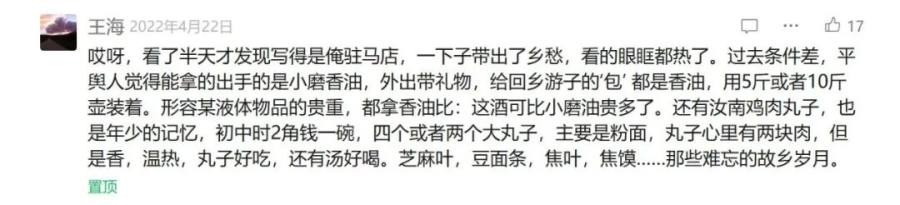 一位来自平舆的豫记读者分享,过去条件差,能拿得出手的礼品就是小磨香油。不论是婚丧嫁娶送礼,还是父母为离乡游子收拾的包袱里,总有一瓶装着满满当当香油的壶。在当地,形容某物品的贵重,都拿香油比:这酒可比小磨油贵多了。