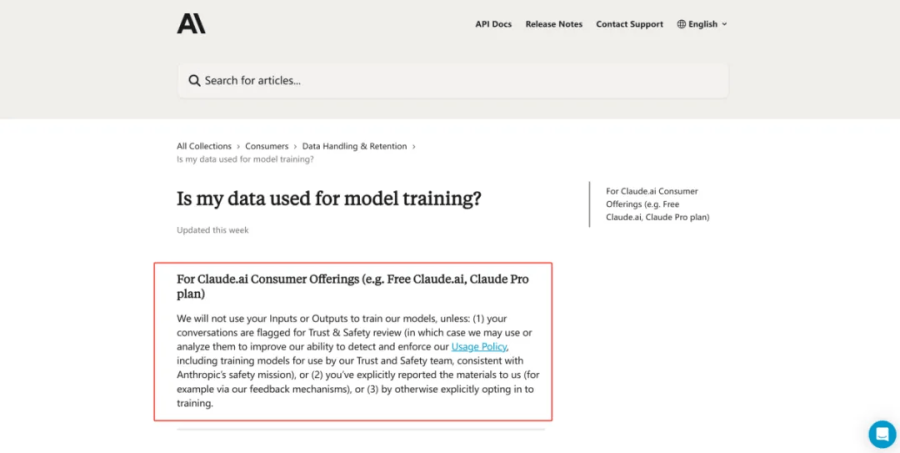 旧版Anthropic用户政策明说默认不使用用户数据训练模型,包括免费用户