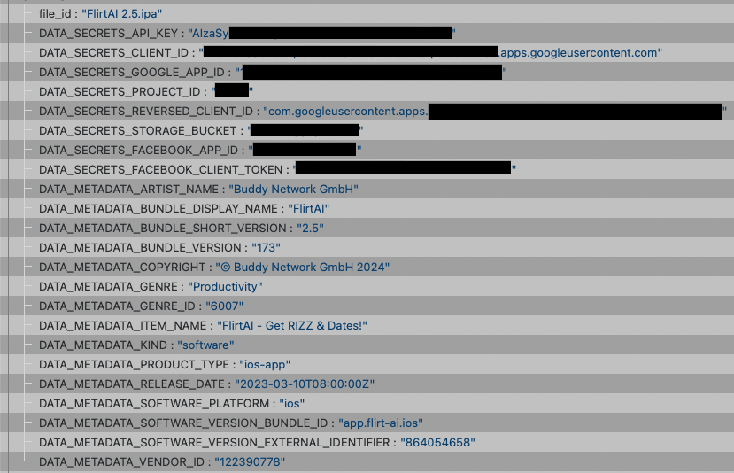 “撩骚AI”用户泄露信息采样,此人的谷歌与Facebook用户名被隐去