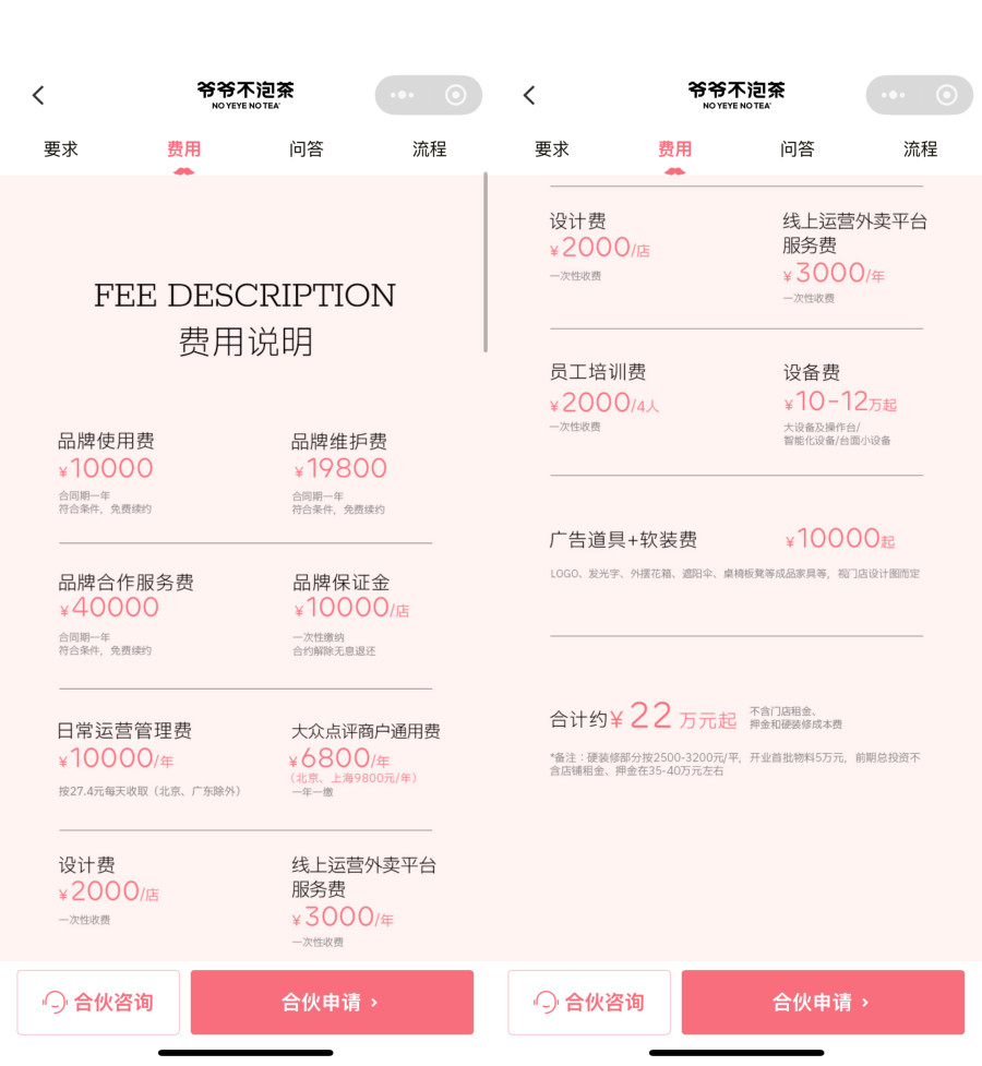 实收率低迷导致收入缩水,成本超预期导致支出增加,一减一增之间,加盟商的利润空间被不断压缩,这也成为爷爷不泡茶扩张模式下最突出的矛盾。