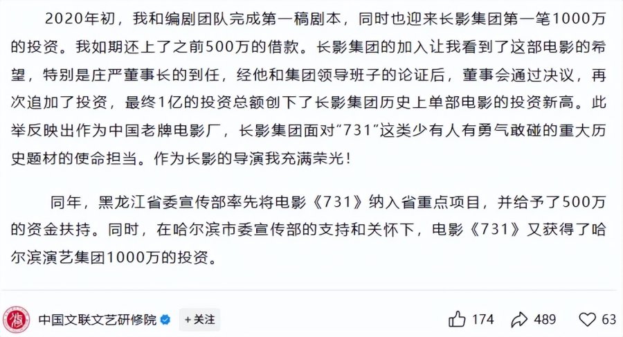 有相关知情人向娱乐资本论爆料,《731》的一家早期投资方“