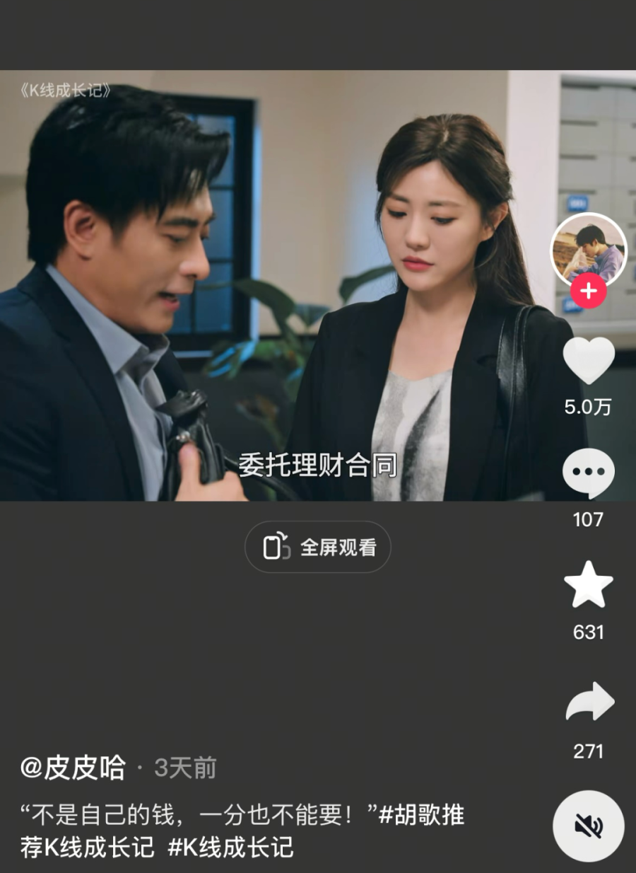 除了《k线成长记》,近期还有不少官方背书的现实主义短剧上线,但同样热度一般。