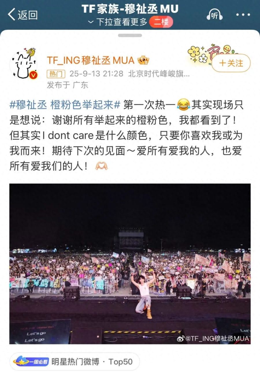 “我想看到橙粉色(唯粉应援色),其他颜色I don’t care!”时代峰峻三代练习生(现TFing厂牌成员)穆祉丞在音乐节互动环节的这句喊话,如同一颗炸弹投向部分粉丝。他紧接着强调的“天天开心只对小纸团(唯粉)说”,彻底点燃了当天在现场占据极大比例的CP粉们的怒火。