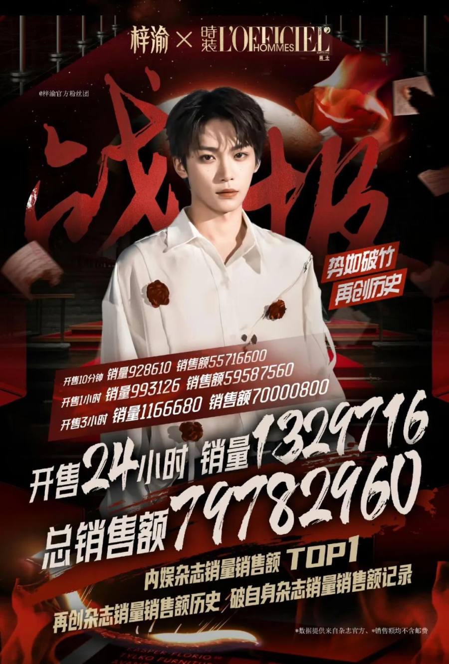 更典型吃到CP红利的,其实是最近讨论度颇高的“6.0”,这个名字代表着它是内娱双男主剧热潮的第六部。剧中两位男主梓渝、田栩宁因CP迅速爆火,梓渝杂志开售仅24小时销量就突破100万册,总销售额逼近8000万,直接冲上内娱杂志销量榜首。后续两人提纯成功后,却被不少CP粉怒骂“忘本”,甚至贴上“不搞双人营销就是忘本咖”的标签。