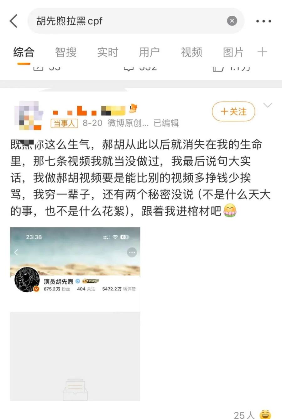 更戏剧性的案例是《棋魂》CP郝富申和胡先煦。剧集播出期间及之后,他们的CP人气居高不下,各种衍生创作层出不穷。但是剧外二人出席活动互动极少,独特的BE美学氛围引得粉丝一嗑就是好几年。但是正主二人,郝富申被曝频繁恋爱、甚至卷入“脚踏多条船”风波,口碑受挫。胡先煦则因生日直播当天被CP话题刷屏,先在社交平台拉黑相关账号,随后通过律师声明向部分CP粉维权。结果是嗑糖的人先心碎,又遭法律回击,CP粉的精神状态遇重创。