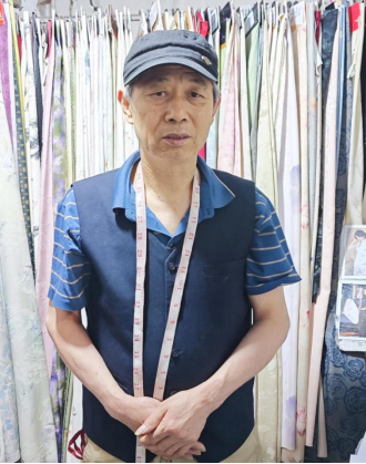 走进店内,货架上陈列的多是棉麻与真丝混纺的面料。李广红深知,纯真丝面料虽轻薄飘逸,却因价格高昂、打理繁琐,让不少消费者望而却步。这种混纺布料,既有真丝的柔滑,又不容易起皱,“好伺候”。每当有顾客上门,尤其是初次尝试旗袍的新手,他总会耐心推荐,并反复叮嘱,千万不能机洗,得用手轻轻搓洗。这些细致入微的建议,不仅是专业的体现,更是对顾客能长久穿着旗袍的用心考量。也正因李广红这份认真对待顾客的心意,不少人专程从外地赶来,其中很大一部分都是第一次定制旗袍的顾客。