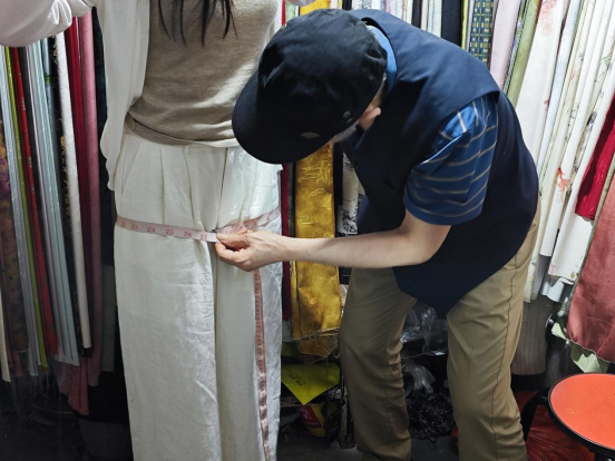 对于款式选择,李广红既坚守传统又拥抱创新。他会主动询问顾客喜欢的颜色,根据风格偏好推荐款式,还会详细讲解不同款式对衣袖宽松度的要求。谈及传统,他语气坚定;当被问到是否做流行款式时,他又笑着回应:“也做,都可以做,只要大家喜欢。”展现出与时俱进的一面。