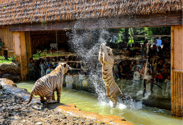 (银基动物王国白虎行为展示)