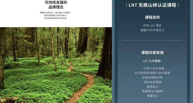 始祖鸟作为高端户外品牌的代表,一直对外传递着“坚守户外精神”的初心,“可持续发展的品牌理念”赫然出现在其官网的“品牌故事”页面,2024年12月还曾在香格里拉开展“LNTT无痕山林认证课程”,旨在缓解户外环境压力。