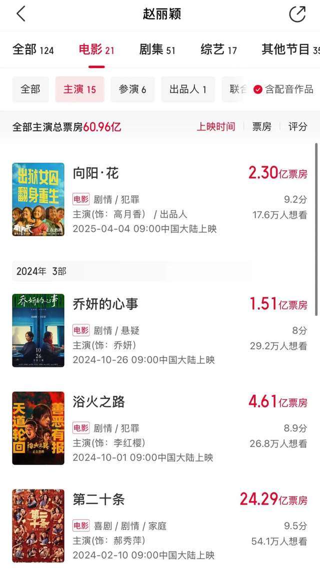 目前来看,当下还拥有“性价比”的演员是赵丽颖,《第二十条》中她饰演的郝秀萍贡献了高光片段,成为短视频出圈剧情之一,而中小成本的《乔妍的心事》《向阳花》都实现了盈利,其主演的电影目前都实现了回本。
