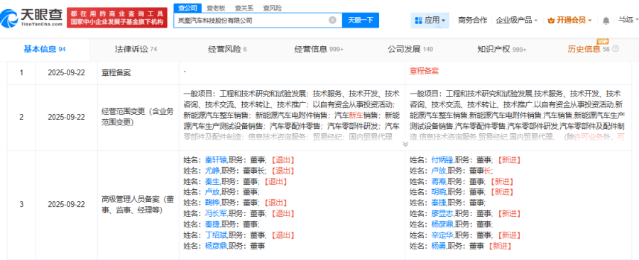天眼查平台显示,9月22日,岚图汽车科技股份有限公司(以下简称“岚图汽车”)发生工商变更,尤峥卸任法定代表人、董事长,由卢放接任。