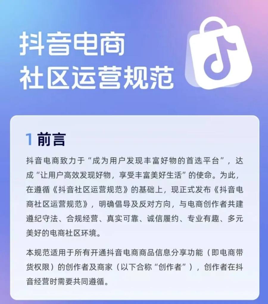 就在9月21日,抖音电商正式发布《抖音电商社区运营规范》。这是抖音电商首次以规范形式明确平台倡导和反对的方向,明确创作者和商家在平台经营的边界。