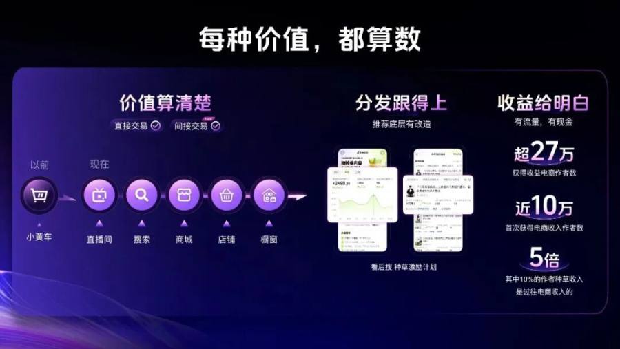数据显示,今年7-8月,27万个参与测试的作者和商家,日均投稿量增加了21%,同时获得了两位数的流量和交易提升。其中有部分,收入直接增长了5倍。