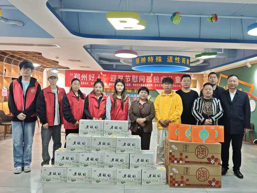 在国庆与中秋双节交织的喜庆氛围里,一场温暖人心的公益活动在郑州悄然展开。9月26日,由郑州好人志愿服务队、郑州爱心雷锋团队、惠济区老鸦陈青年公益团、河南体育学院艺术系“艺启爱”辅导员工作室、郑州百兴食品有限公司、焦作市博农乳业有限责任公司等多个爱心团体组成的联合慰问团队走进郑州两家特殊教育机构,为孤独症儿童送去节日的关怀,“河南好人”郑州好人党建工作室顾问孔得发、郑州好人志愿服务队队长宋桂华、惠济好人党建工作室主任陈军平、惠济区老鸦陈青年公益团团长陈永福等爱心人士、企业家代表与大学生志愿者一道参加慰问活动。这场活动凝聚了社会各界的力量,展现了城市文明建设的温度。这也是自2022年9月郑州好人党建工作室联合郑州好人志愿服务队发起的“双百行动”计划中做的第195件好事实事,迄今为止,已举办45场宣讲活动,一件件好事,一场场宣讲,弘扬并传承“学好人、做好事、好人互助”的好人精神。