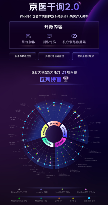 比如零售首次对外公布电商创新AI架构体系Oxygen,依托Joy AI大模型打造丰富的系统能力和多元化智能体,对商家来说,Oxygen架构可深度介入内容生成、供应链管理,实现全链路提效,描摹出AI电商的未来蓝图。物流场景,全新升级的物流超脑大模型2.0全面走向多模态,让智能设备自主协同,使标准化操作水平提升15%,人机协同作业效率提升20%;首次发布的异狼具身智能机械臂,可解决海量非标包裹的自动化码垛难题,极大提高了物流仓储效率和准确性,成为物流行业的智能新标杆。健康场景,京医千询2.0作为行业首个可信推理模型,全面服务复杂专病诊疗。同时,承载新一代模型能力的京东健康AI医院1.0,也成为医疗健康行业的最新实践。工业场景,首个工业供应链大模型JoyIndustrial依托5710万工业品SKU数据与40+细分行业经验,为行业带来6.77万亿的降本空间,再搭配九大工业行业及机器人专属解决方案,助力中国工业降本万亿。