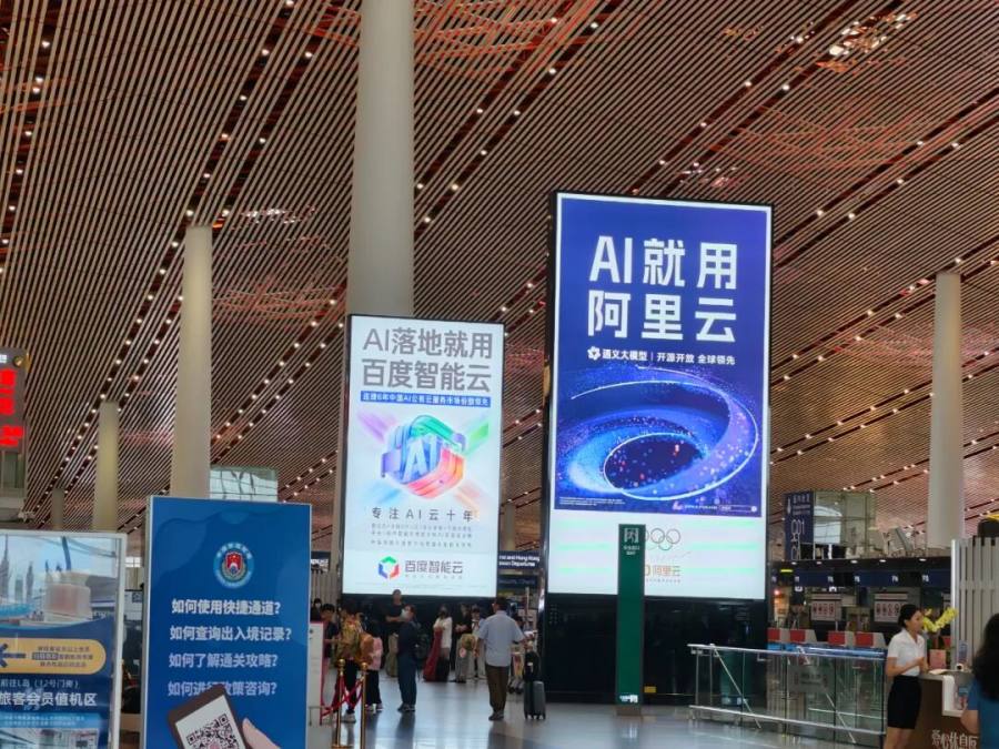 最近,路过北上广深杭等一、二线城市的人,都会被机场广告牌的直接对垒击中:阿里云、火山引擎、百度云的大幅广告铺天盖地、并肩而立,抢占着候机大厅、登机口等显著位置。