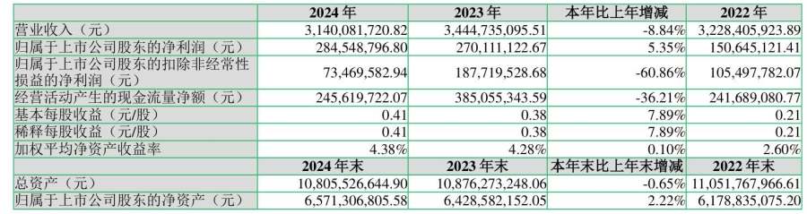 其2024年全年营业收入便已经下降至31.40亿元,同比下滑8.84%。更为严峻的是,代表主业真实盈利能力的扣除非经常性损益的净利润,从2023年的1.88亿元断崖式下跌至2024年的7347万元,降幅高达60.86%。
