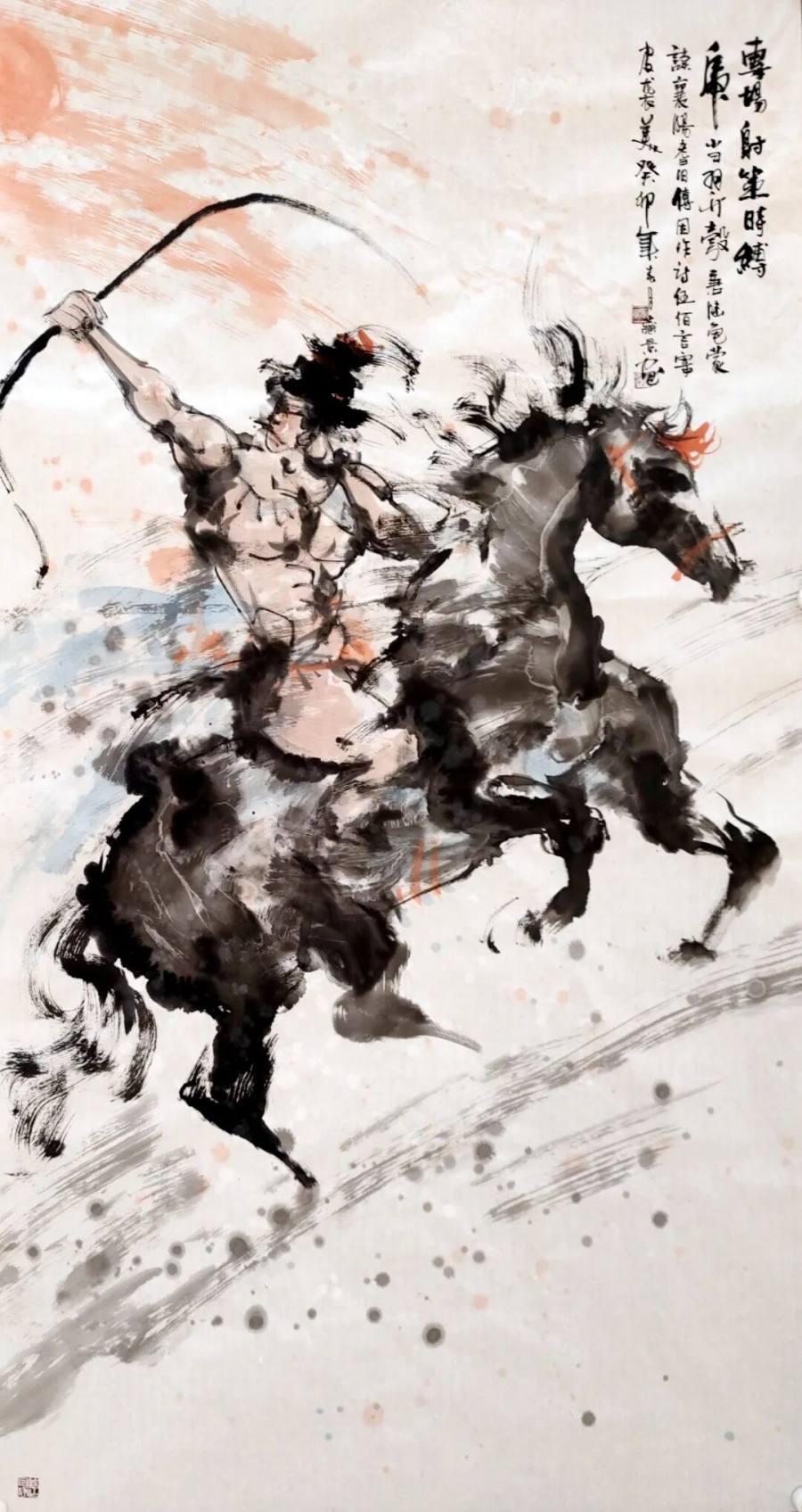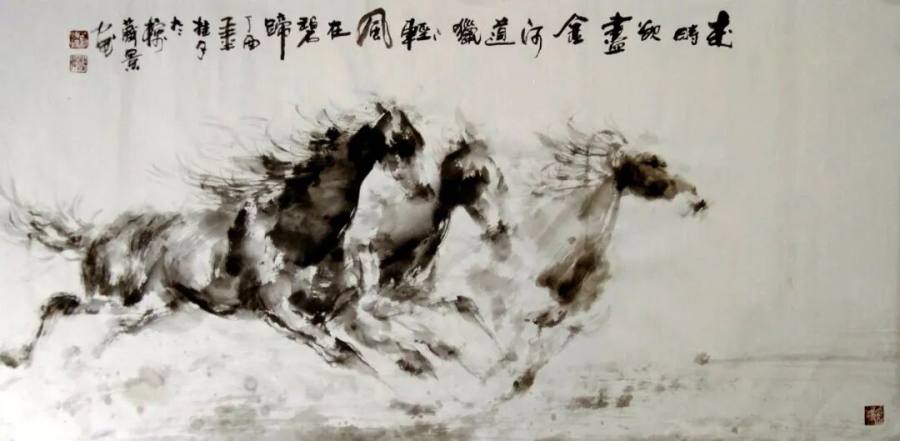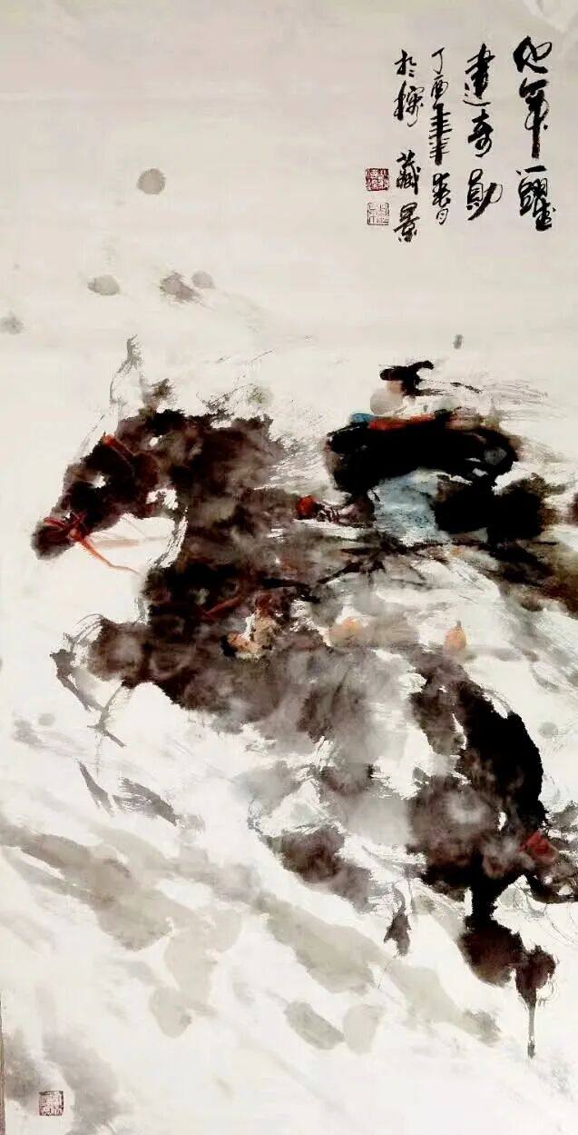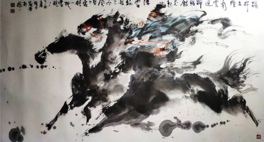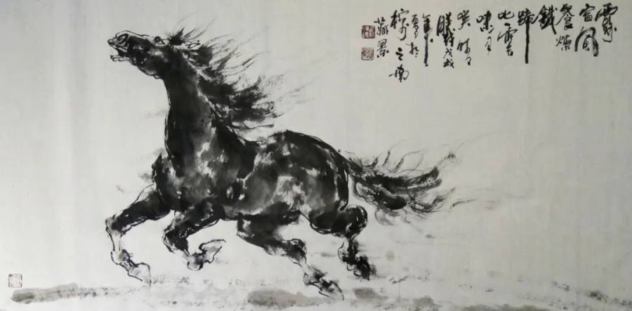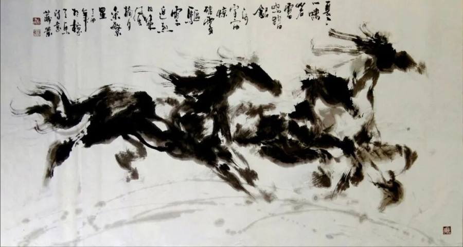 然当下画坛虽然也是群贤毕集,但是真正能够在写意骏马界内达到深厚造诣的画家,除先生以外确难寻其二!作为一名历经画坛四十余年的实力派画家,先生的画艺之事可谓是由来已久,上世纪八十年代初时以油墨画作见长,并以独创用西方的油画颜料融入中国水墨中的异彩流动,收获意外的惊喜和意料中的凝固就是一幅美妙的油墨画,不仅仅只是富于生动传神之妙,作中他更是能在极高的技法难度上来为油墨画形象传递出丰富的人文感和力量感,观之可谓震撼人心!而今日的先生得益于从小在军旅大院与军马一起成长及多年与游牧民族生活息息相关,更是以写意骏马画作独步于界内,所绘烈马无不是大气磅礴,形神兼备!