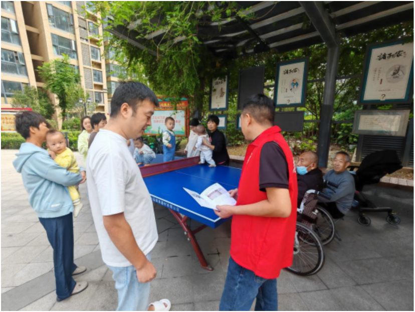 活动现场设在村中心小广场,志愿者利用群众晨练、散步高峰时段,在乒乓球台旁设立“流动阅读角”,供群众现场阅读。村“两委”成员、新时代文明实践志愿者现场发放阅读倡议书和全民健身手册,面对面讲解“每天阅读一小时、锻炼半小时”健康生活理念,倡导“多读书、读好书、善读书”,鼓励群众把阅读融入日常、把运动变成习惯。