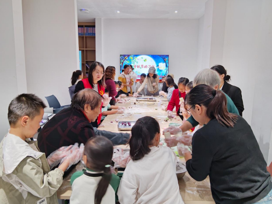 活动现场暖意融融,三大特色环节同步推进,让不同年龄层的居民都能找到属于自己的乐趣。在冰皮月饼制作区,揉面、包馅、压模的步骤有条不紊,家长带着孩子,邻里相互搭手,将雪白的冰皮裹上香甜的馅料,一个个造型精致的月饼在手中诞生。