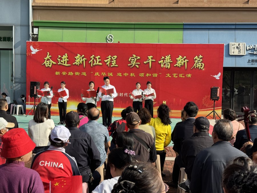 9月29日上午,上街区新安路街道围绕“奋进新征程,实干谱新篇”主题,在赛德教育广场举办2025年“庆华诞 迎中秋 颂和谐”文艺汇演,辖区居民欢聚一堂,共赏文艺盛宴,共叙家国团圆。