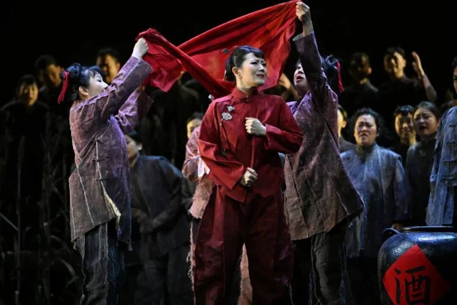 当地域风情与歌剧美学碰撞,作品的“中国风格”与“中国气派”成为最大亮点。作曲家郭文景通过采风汲取的茂腔、山东梆子等民间音乐元素,与美声唱法巧妙融合,传递一方水土特有的音乐语言。角色“戴老三”的唱词带有浓郁乡音;“九儿”的旋律以“烈火动机”彰显刚烈本性;“余占鳌”的唱段则将霸气节奏与抒情主题并置,人物的音乐形象鲜明如画。