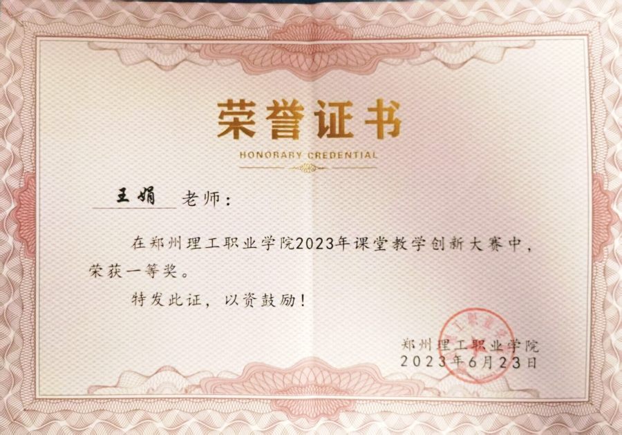 多年来,王娟老师先后荣获学校“优秀教师”“先进教育工作者”“优秀党员”“巾帼建功标兵”等荣誉称号,被评为“郑州市民办教育优秀教师”。每一项荣誉的背后,都是她对教育事业无限热爱与不懈追求的见证。
