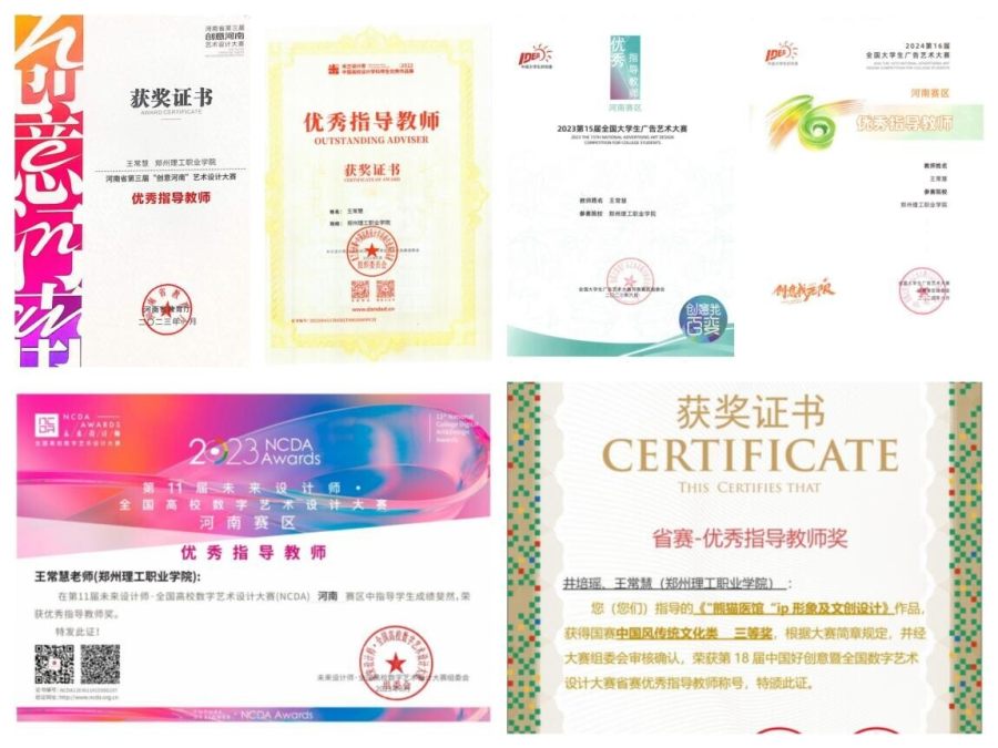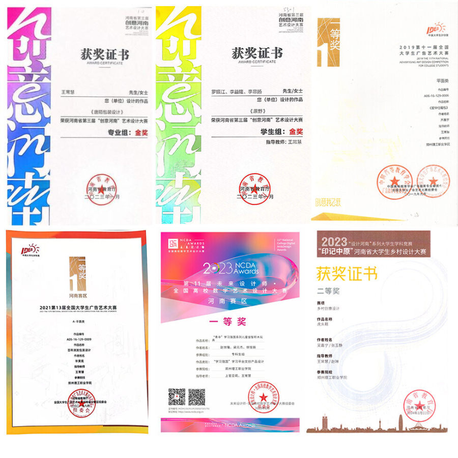 这份用心换来了丰硕成果:她指导的学生在第11届全国大学生广告艺术大赛中斩获国赛一等奖,实现学校该赛事国赛一等奖“零的突破”;累计指导学生获国家级、省市级竞赛奖项100余项,她本人也多次被河南省教育厅评为“优秀指导教师”。不少学生毕业后进入河南本土设计企业,凭借扎实的实操能力快速成为业务骨干,常有企业反馈:“王老师教出来的学生,上手快、懂需求,不用过多磨合就能胜任岗位。”