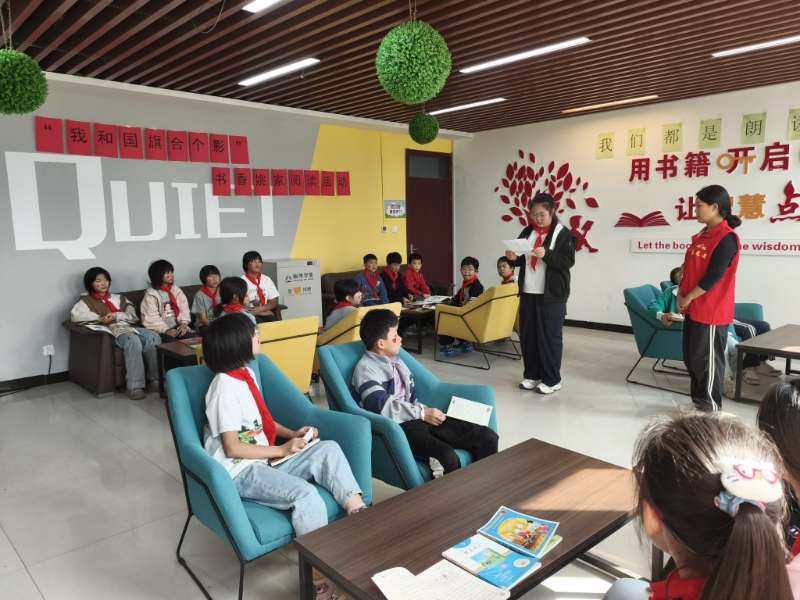 活动现场,一面面鲜红的五星红旗脸贴贴于青少年们的脸庞,成为独特的“精神坐标”。同学们带着《我的祖国》《小兵张嘎》《少年中国说》等青少年红色读物。分享环节中,同学们带着自己的“心头好书”走上前去:五(1)班的姚沐沐声情并茂地朗读《小兵张嘎》中“嘎子智斗敌人”的片段,引得台下阵阵掌声;五(2)班的方子亦则结合书中“航天人攻坚克难”的故事,分享自己“想当科学家报效祖国”的梦想,稚嫩的话语里满是坚定。