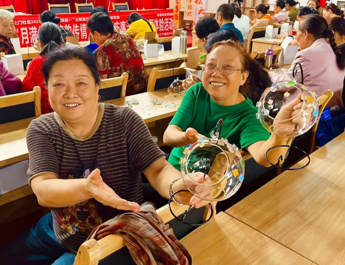 互动环节将现场气氛推向高潮。“俭约”月饼品鉴中,社区特意选用小份包装,引导居民在品尝美味的同时,树立节约粮食、反对浪费的文明观念;在琉璃灯手工制作环节,居民们亲手在马赛克灯面上拼贴“清莲”“正心”等廉洁主题图案,将廉洁理念具象化为一件件非遗作品,在创作过程中深化对廉洁文化的理解与认同。