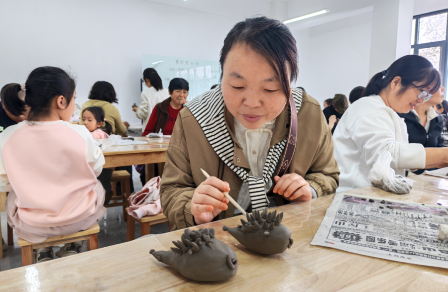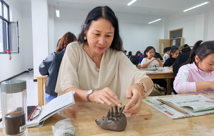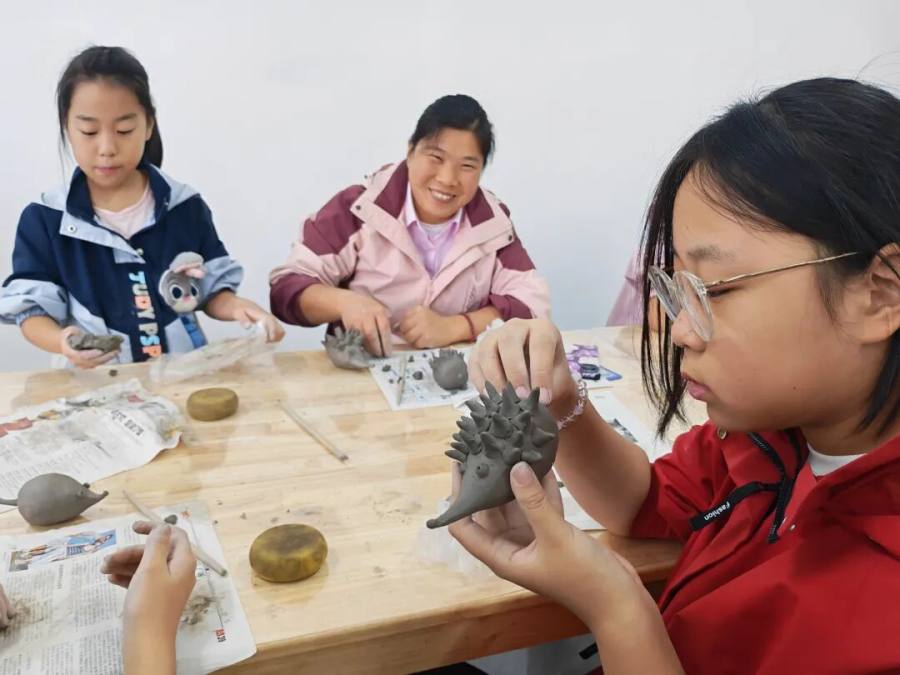 在动手实践环节,大家兴致盎然,纷纷拿起陶泥,通过揉、捏、搓、刻等手法,精心塑造属于自己的陶艺作品。从塑造圆润的身体到刻画细密的“棘刺”,每一个步骤都充满了乐趣与挑战。无论是亲子家庭间的默契配合,还是朋友们之间的相互切磋,亦或是学生们专注认真的神情,都成为了活动现场一道道亮丽的风景线。一时间,一件件形态各异、充满童趣的“小刺猬”在大家手中逐渐成型,现场充满了欢声笑语和创造的喜悦。