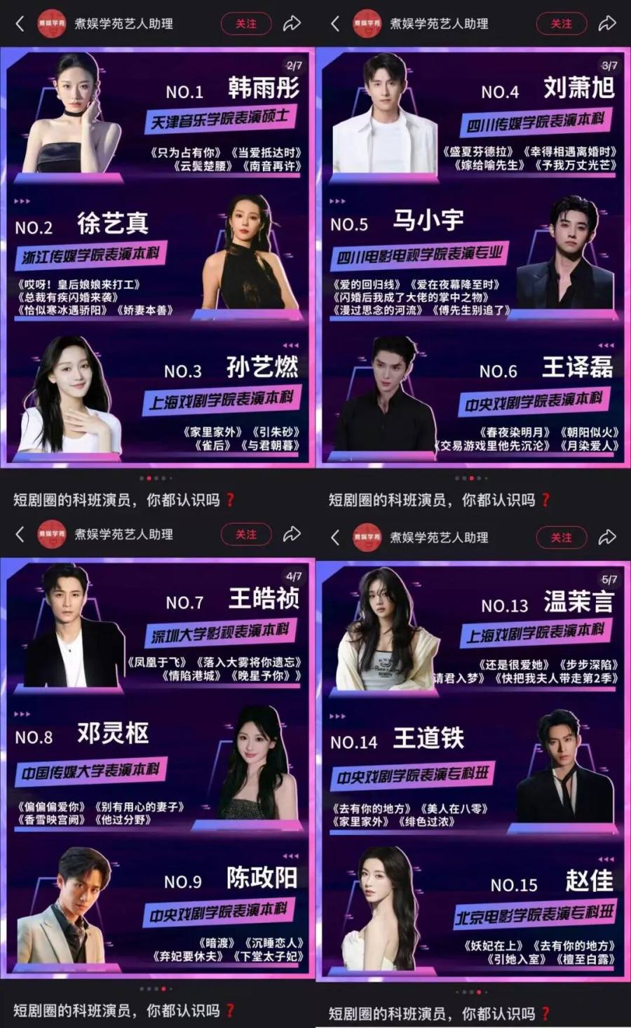 这种策略的核心逻辑是“以量换稳”,同时在成规模的演员储备中跑出每个演员自己的赛道。其中有很大一部分在短剧赛道闯出了人气。