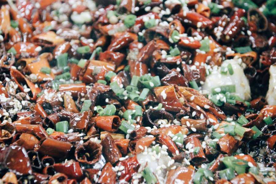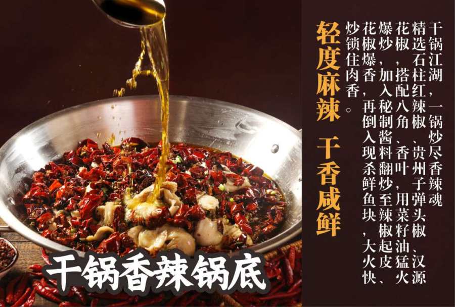凑近一看,更是让人眼前一亮:铁锅底部铺着一层鱼肉,表面撒着鲜红的干辣椒、一锅尽显辣魂,轻度麻辣,干香咸鲜,色泽诱人到不行。店铺负责人笑着介绍,店里的鱼都是每天清晨从市场新鲜采购的活鱼,现点现杀,保证每一口都是“鲜掉眉”的口感。