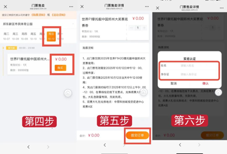 市民群众可通过关注新发展体育公众号,点击下方“一键订场”,并点击进入2025年世界F1H2O摩托艇中国郑州大奖赛“观赛券”链接,即可完成免费预约!(详情见下图)