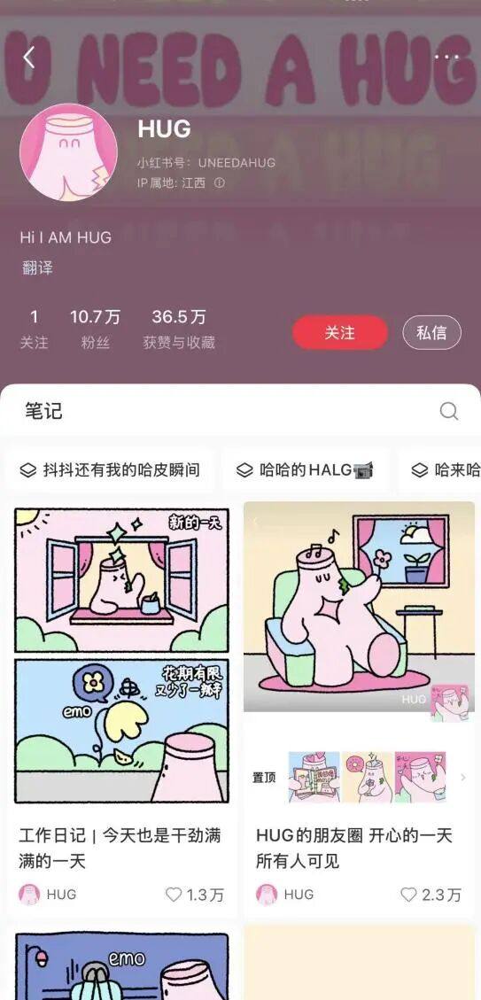 为了让HUG的形象丰富且立体,运营团队还邀请其形象的委托设计师来共同创作表情包和条漫,5月运营至今,HUG小红书账号粉丝已突破10万,每个条漫作品的点赞量也都成功破万。