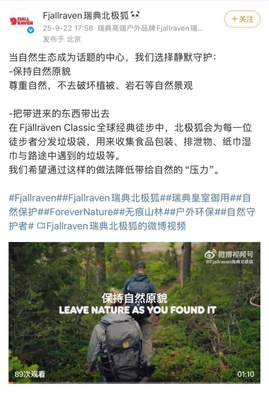 国际品牌中,瑞典北极狐强调“把带进来的东西带出去”,并call back了自己在曾经的全球经典徒步中为每一位徒步者分发垃圾袋,话题直接绑定“无痕山林”;攀山鼠也未直接点明,含蓄地表态“我们始终和自然在一起。”;近期不断发力的安德玛户外也表态发声;MONTANE则“手滑”点赞相关词条。