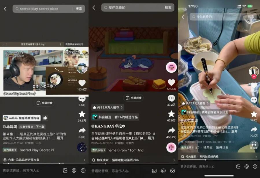 区别于以往全网病毒式传播的抽象、猎奇内容,最新走红的这一批创作者,更垂直,更深度,也更真诚,反而快速吸引了有同样内容需求的用户。