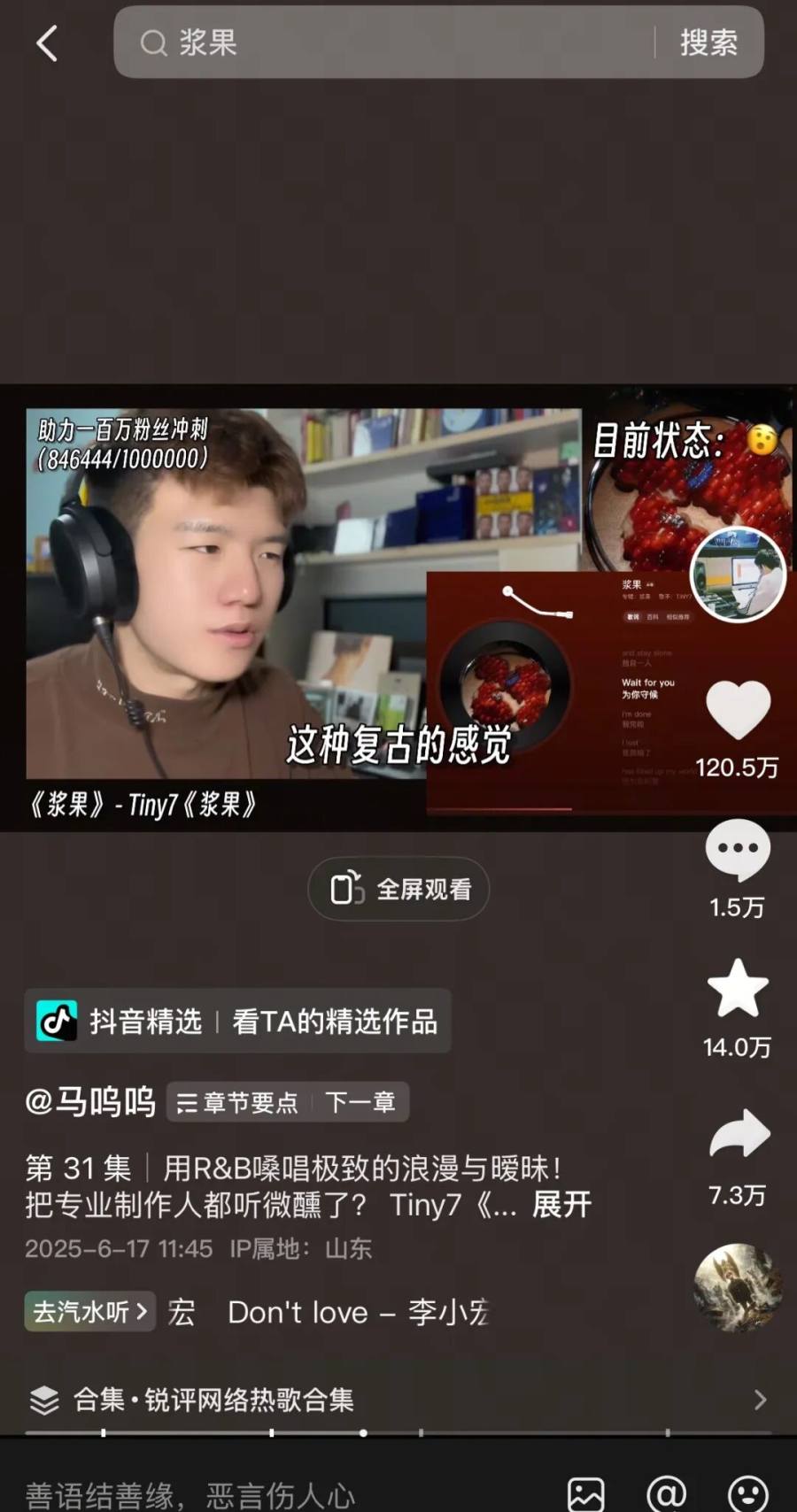 流行音乐制作专业出身的马呜呜,毕业后开始接一些音乐制作相关工作,做reaction只是出于兴趣。今年3月,马呜呜在抖音发布了2支reaction视频,没想到单条播放量就超过了百万。“后来还有一期上了抖音热榜,当时就觉得可能这里可能更适合我。”